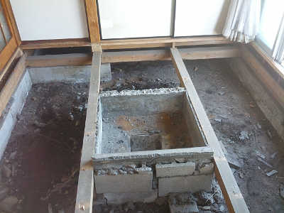 床がグランドピアノの重さに耐えきれないだろうと確信し、修理・補強に行ってきた。 サムソナイトに大工道具を入れ神奈川へ。